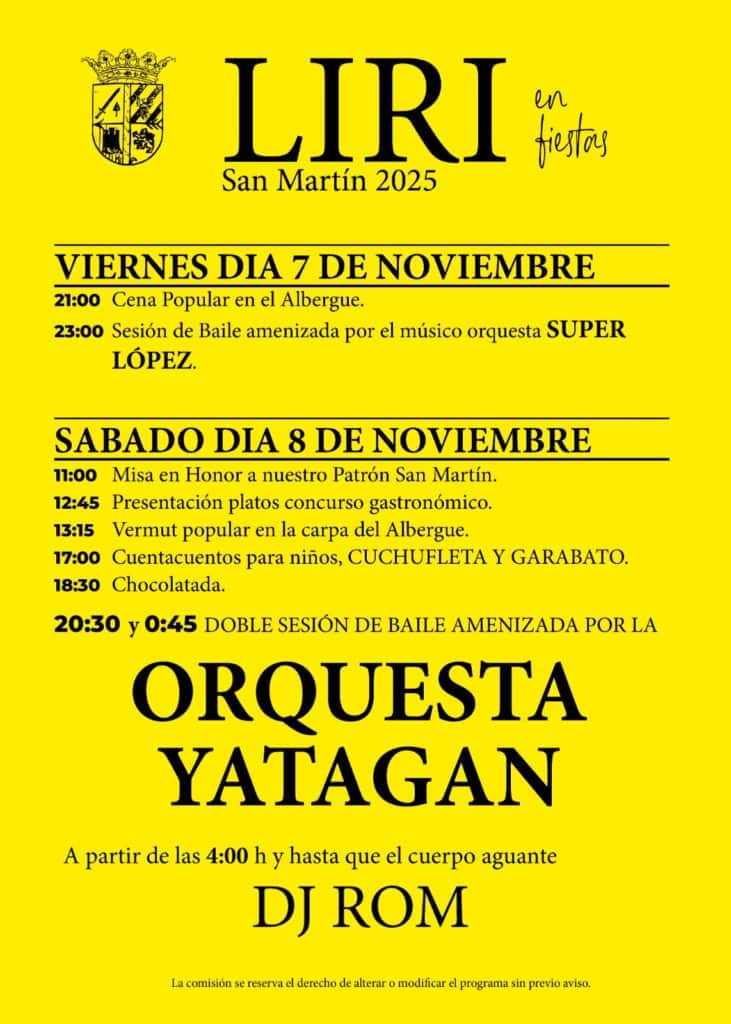 FIESTAS EN LIRI EN HONOR A SAN MARTÍN – Días 7 y 8 de noviembre 2025